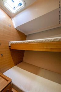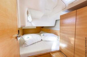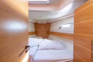 Die Istros kombiniert sportliche Linien mit einem funktionalen und zugleich gemütlichen Innenraum. Sie verfügt über 3 Doppelkabinen, 1 Stockbettkabine und 1 Nasszelle.